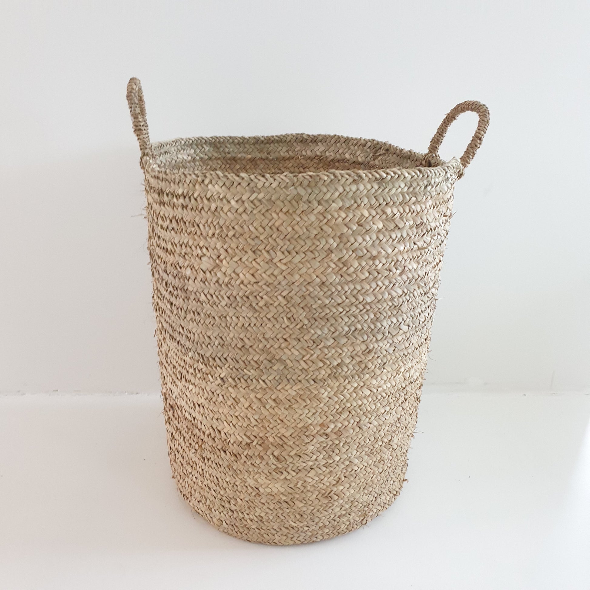 Een hele leuke rieten hoge mand, bijvoorbeeld te gebruiken als een mooie opberger voor speelgoed, kussens & plaids of als bijvoorbeeld wasmand in de badkamer.