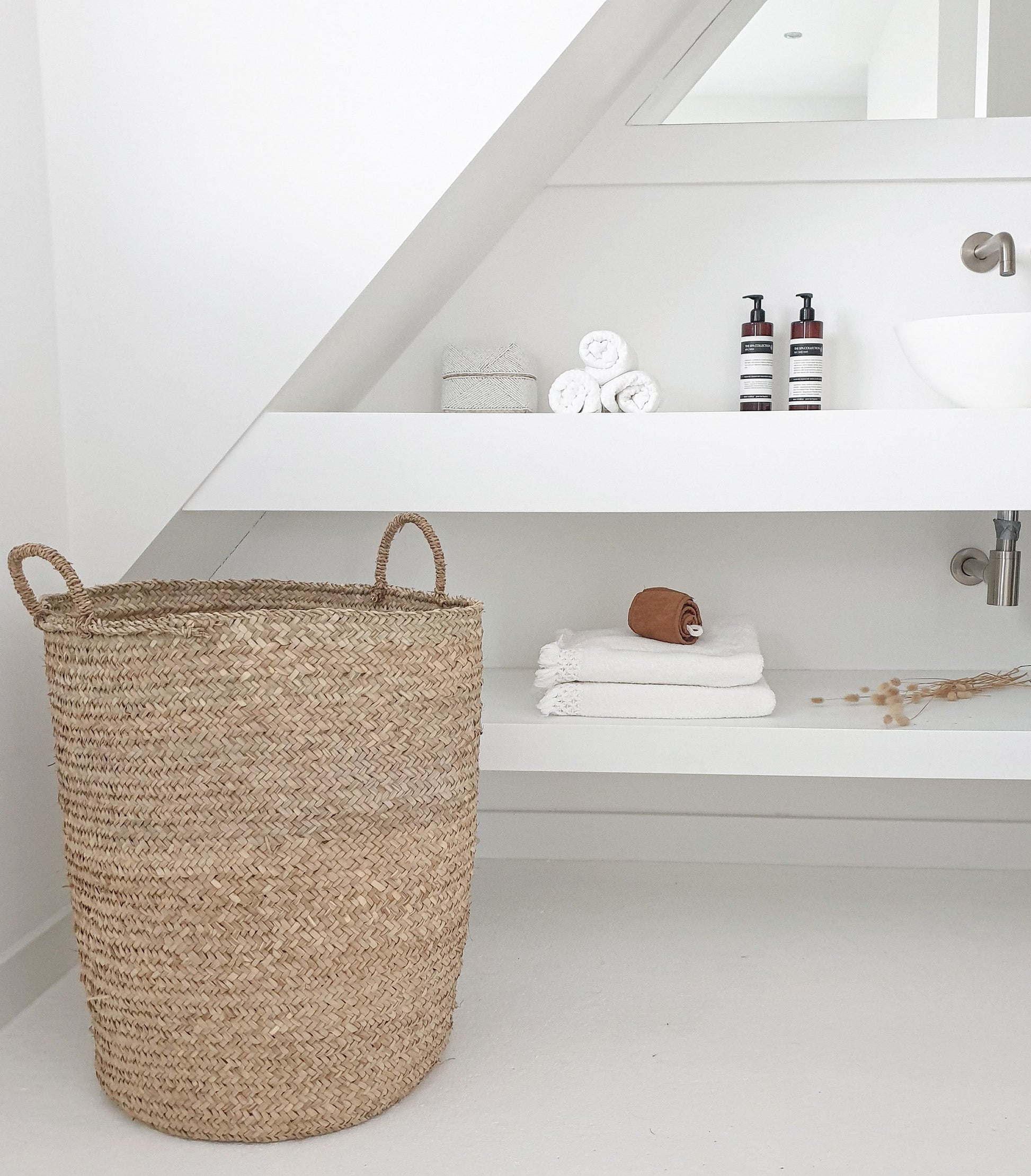 Let op! De manden worden met de hand gevlochten en kunnen daardoor afwijken in afmetingen en door het handwerk en hun hoge en grote maat zijn ze ook niet helemaal rond en symmetrisch.