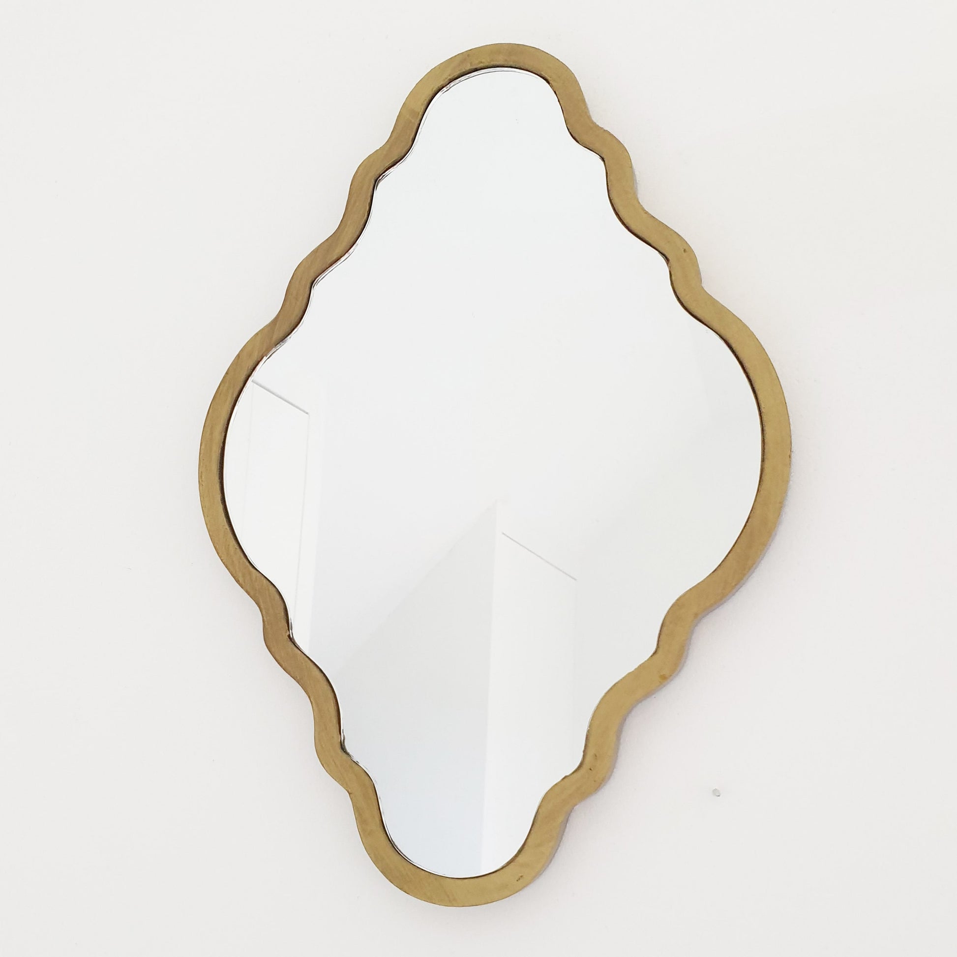 Deze prachtige goudkleurige spiegel met zijn mooie ronde vormen geeft een oosterse vibe aan jouw interieur.