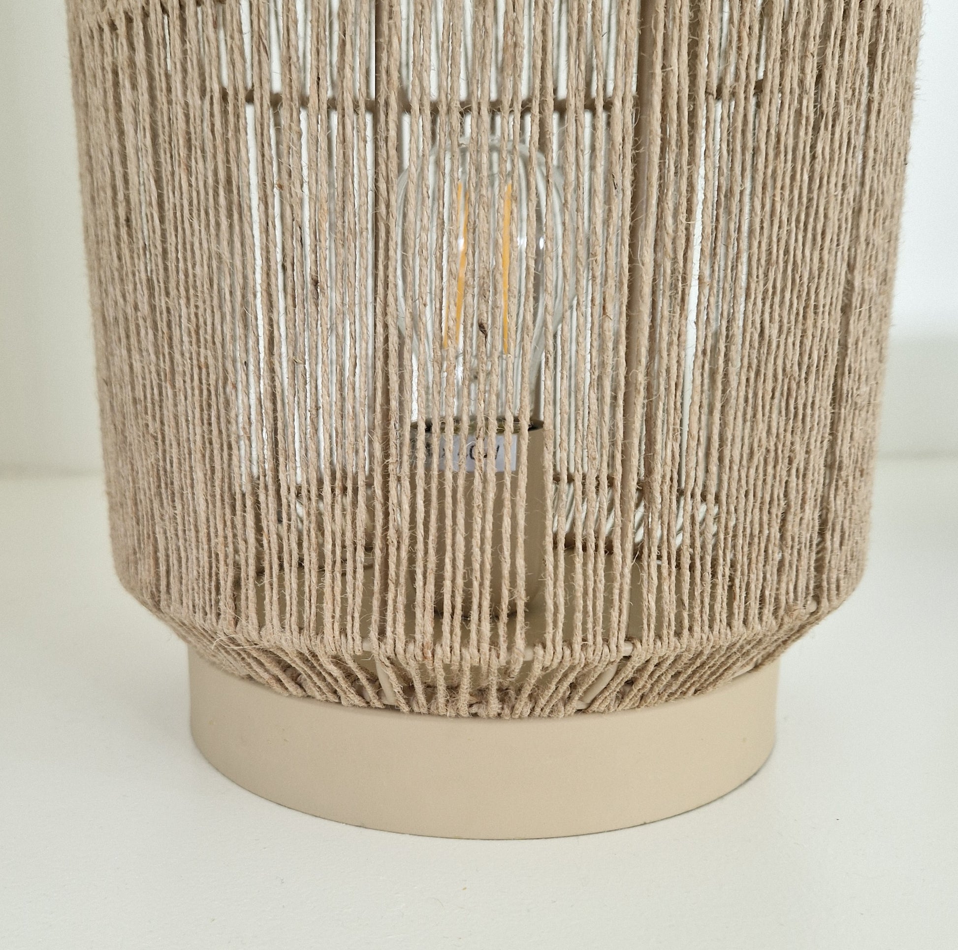 Breng een unieke mix van industriële charme en natuurlijke materialen in je interieur met de Casita tafellamp van Pomax! Deze prachtige lamp combineert een robuuste stalen basis met een met touw omwikkelde frame, wat zorgt voor een opvallend en stijlvol ontwerp dat in elke kamer de show steelt.