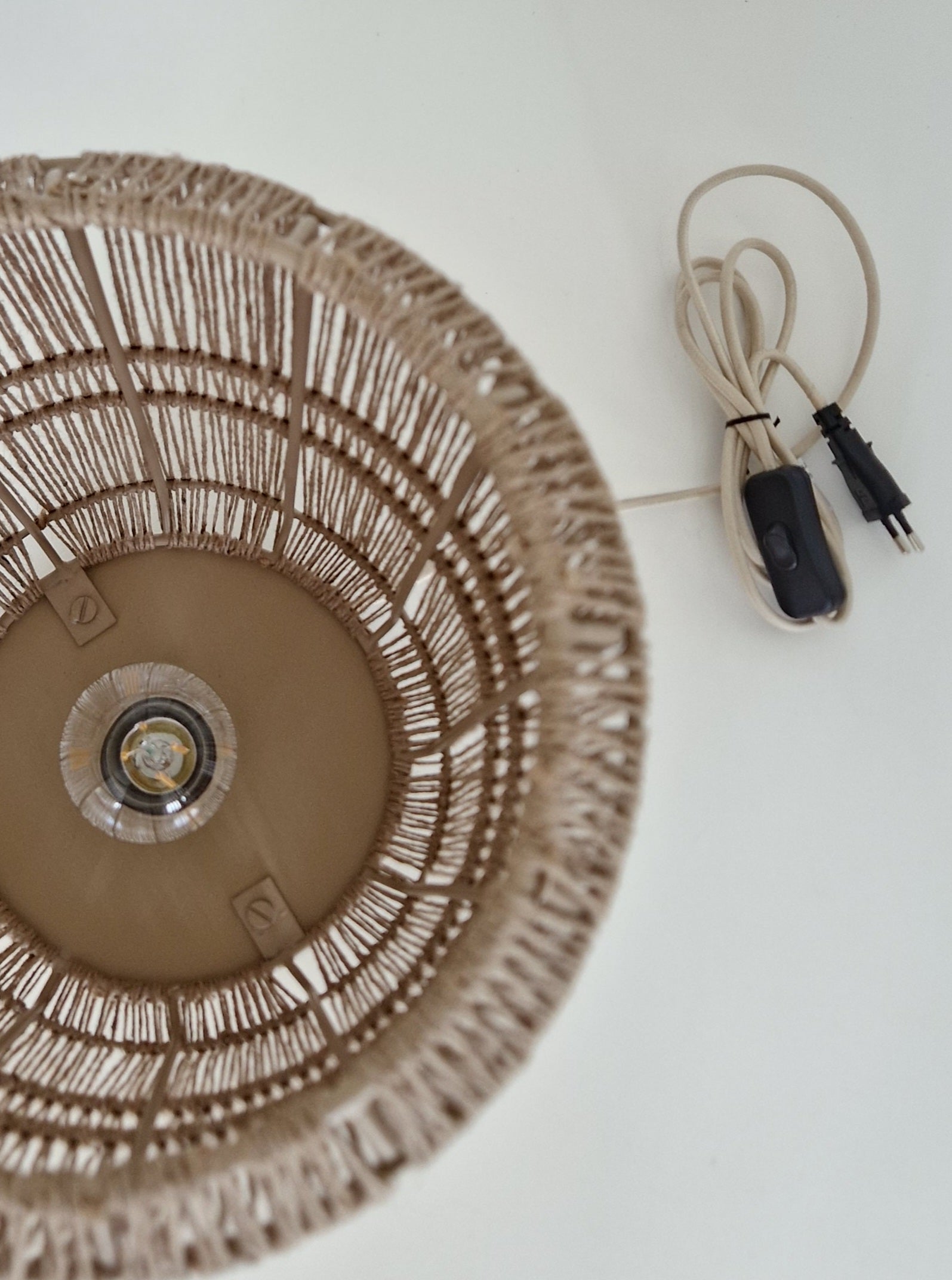 Het gebruik van metaal en touw geeft deze lamp een rustieke en toch moderne uitstraling, waardoor hij naadloos past in diverse interieurstijlen, van boho chic tot industrieel.